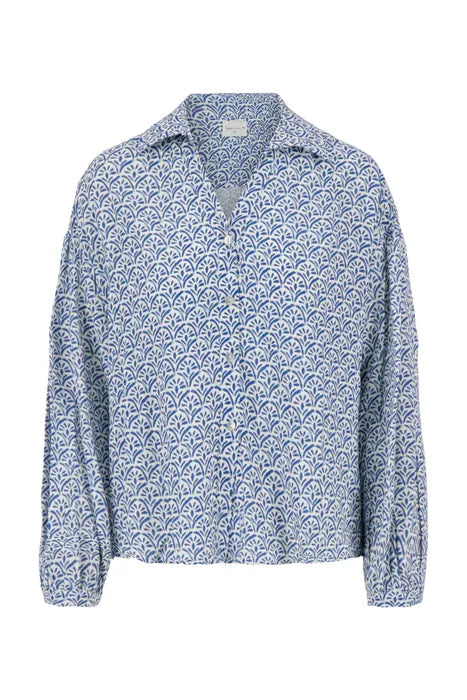 Zusss blouse lange mouw met waaierprint multikleur