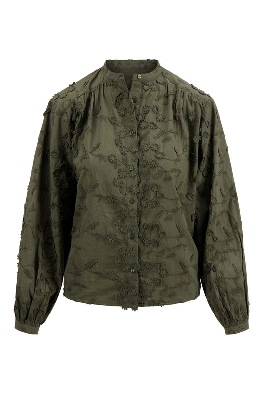 Zusss blouse met bloem structuur moss green