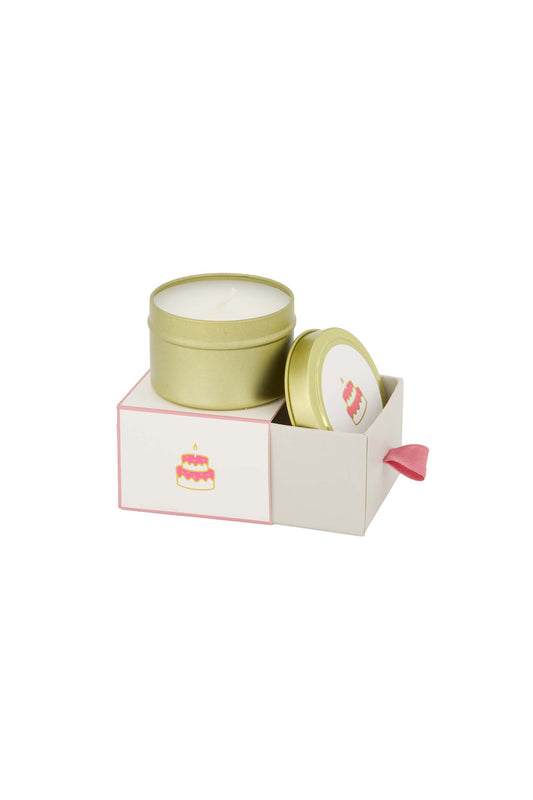 Zusss geurkaars tinnen in schuifdoosje gefeliciteerd taart wit roze