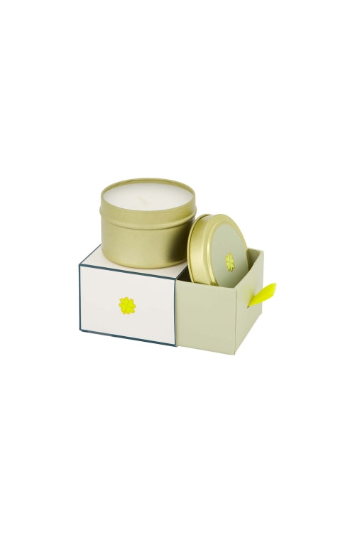 Zusss geurkaars tinnen in schuifdoosje veel geluk klavertje wit groen