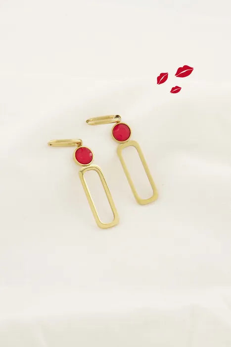 Zusss oorbel hanger ovaal met kraal rood