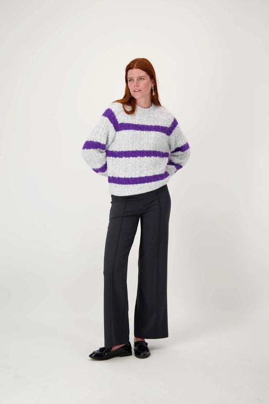 Zusss streep kabeltrui met ballonmouw mid grey mid purple