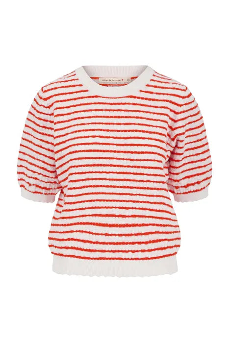 AanbiedingZusss trui korte mouw met streep wit/rood