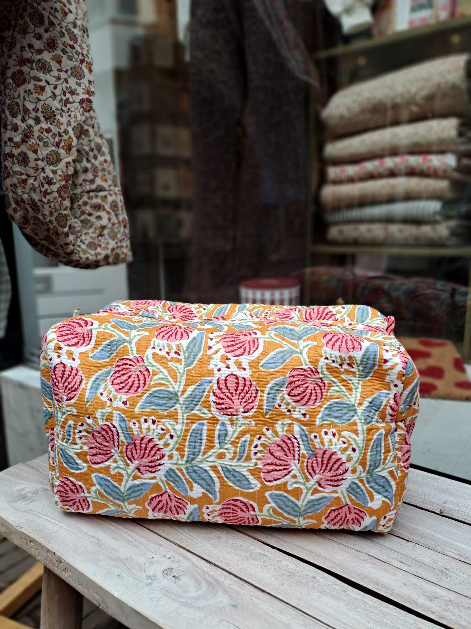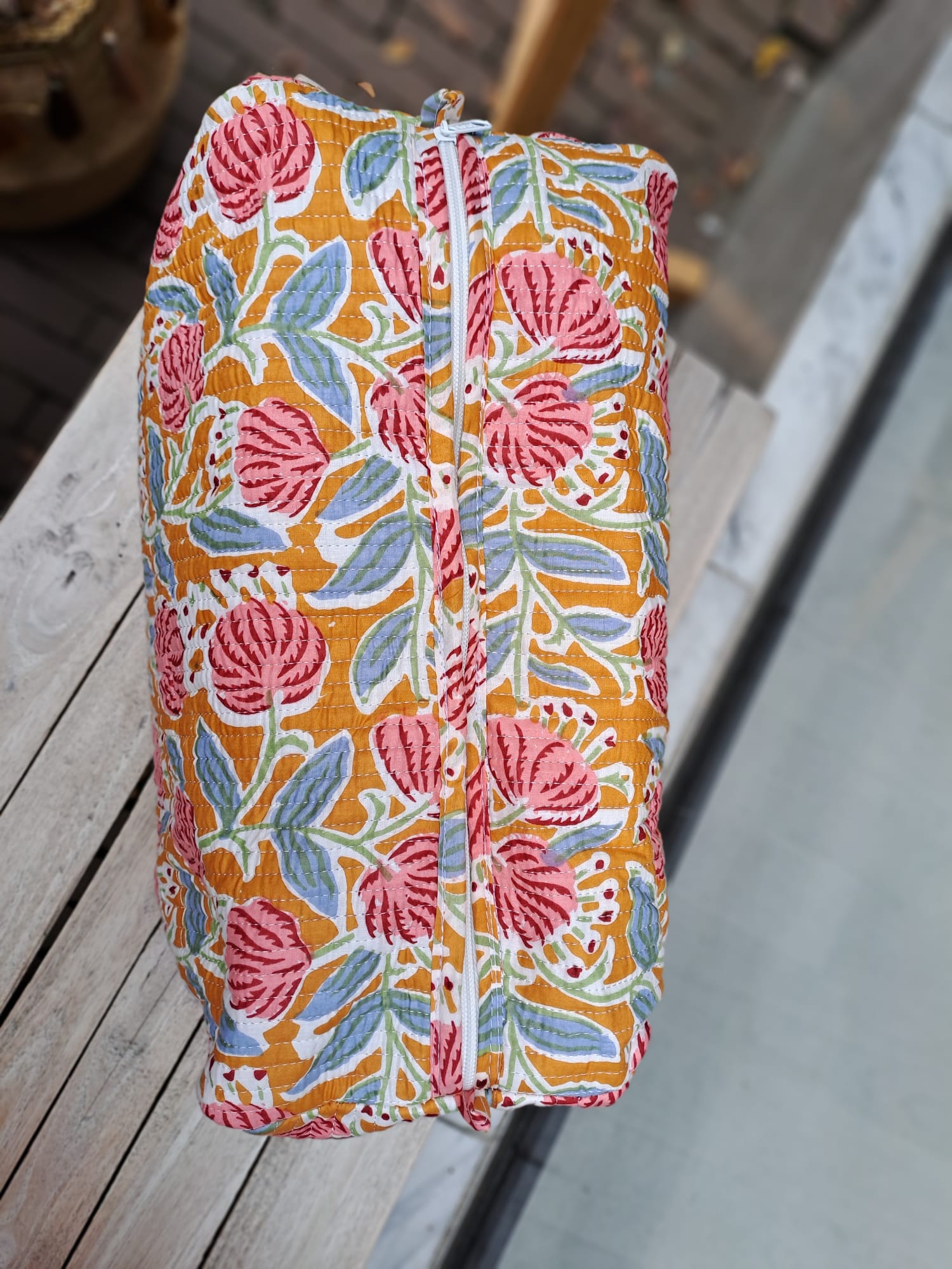 Onze handgemaakte toilettas komt rechtstreeks uit India, gemaakt van de mooiste zorgvuldig geselecteerde stoffen. We weten allemaal hoe frustrerend het is als je toilettas te klein blijkt – daarom hebben wij speciaal een ruime, praktische maat laten maken. Zo heb je altijd genoeg plek voor al je favoriete verzorgingsproducten.