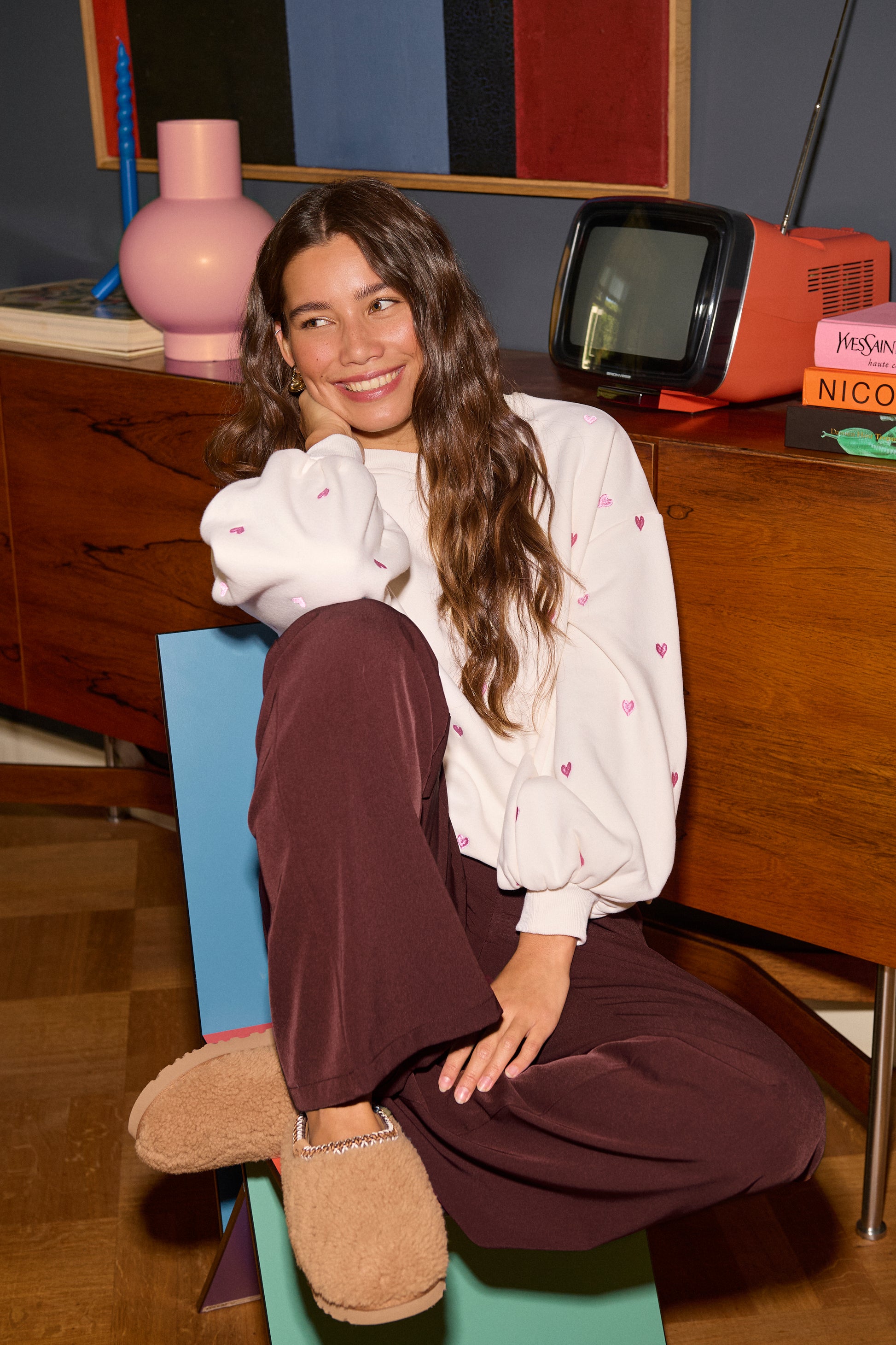 Ydence Sweater Hearts Ecru/Pink