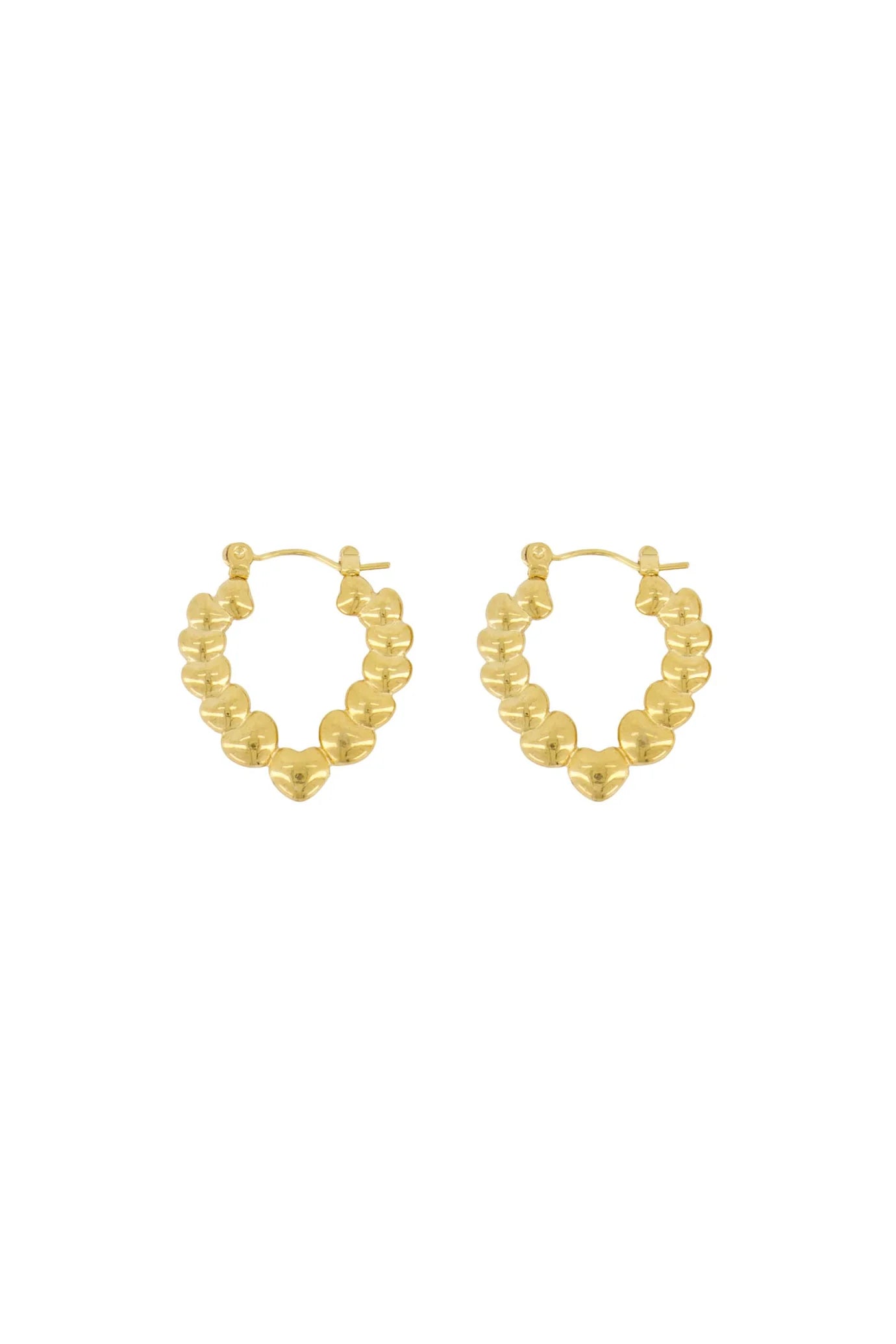 Deze Zusss oorringen met hartjes geven een zachte uitstraling aan elke outfit. De gouden kleur zorgt voor een warme, tijdloze look die makkelijk te combineren is. De oorringen hebben een ovale vorm die subtiel en verfijnd is, ideaal voor dagelijks dragen of een speciale gelegenheid. Met hun fijne design zijn deze gouden accessoires perfect om je favoriete kleding mee aan te vullen en net dat beetje extra uitstraling te geven.