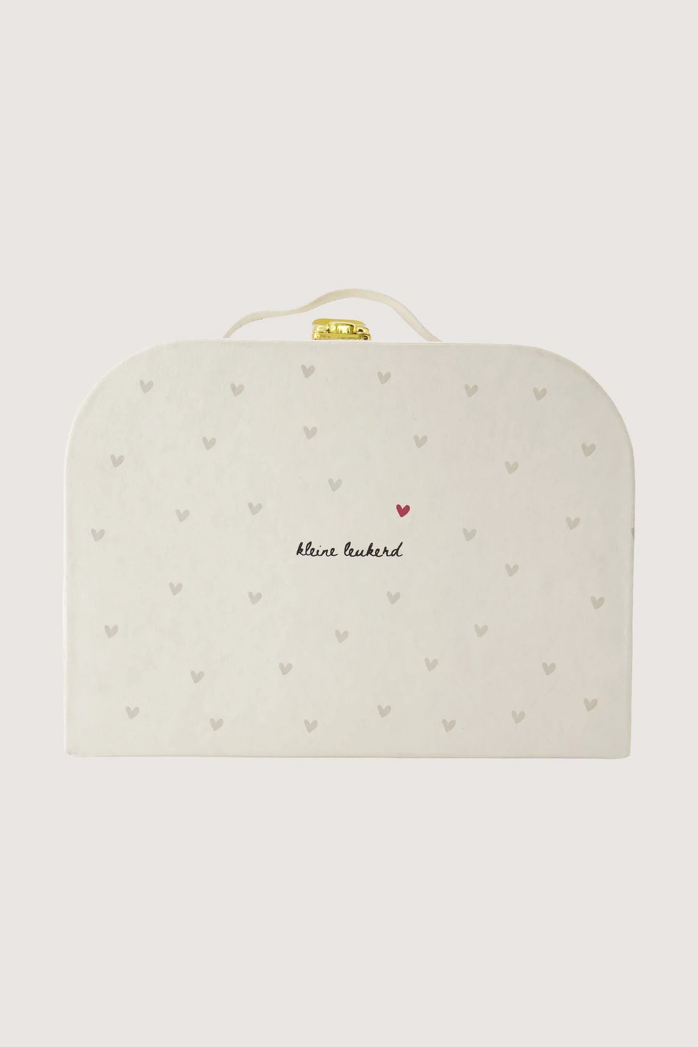 De herinneringen koffer kleine leukerd van Zusss is perfect om dierbare momenten te bewaren. Deze herinneringen koffer in de kleur wit met zandkleurige hartjes en een klein rood hartje, is gemaakt van stevig karton. Met een afmeting van 28x20x8 cm is de herinneringen koffer kleine leukerd handig en compact. De woorden “kleine leukerd” staan subtiel op de voorkant, wat deze herinneringen koffer een speels en lief karakter geeft.