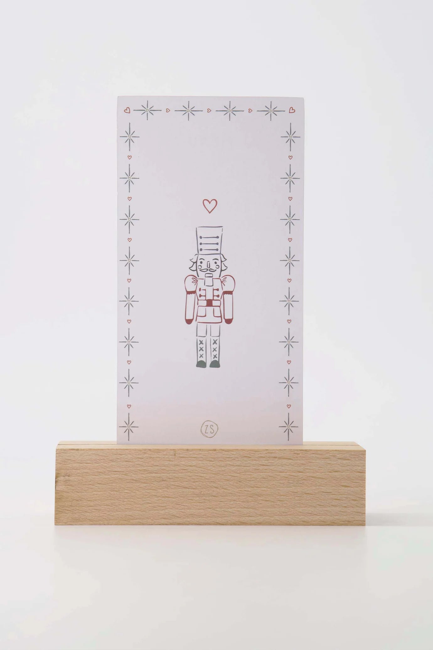 De Zusss menukaartjes notenkraker geven jouw kerstdiner een warme, persoonlijke touch. Met de handgeschreven uitstraling en subtiele sterrenrand maak je gemakkelijk een overzichtelijk menu. De notenkraker stijl en witte kleur zorgen voor een tijdloze en gezellige sfeer. Schuif het kaartje eenvoudig in het houten standaardje en presenteer je menu met stijl. Perfect voor een sfeervolle kersttafel of creatieve hobbyprojecten.
