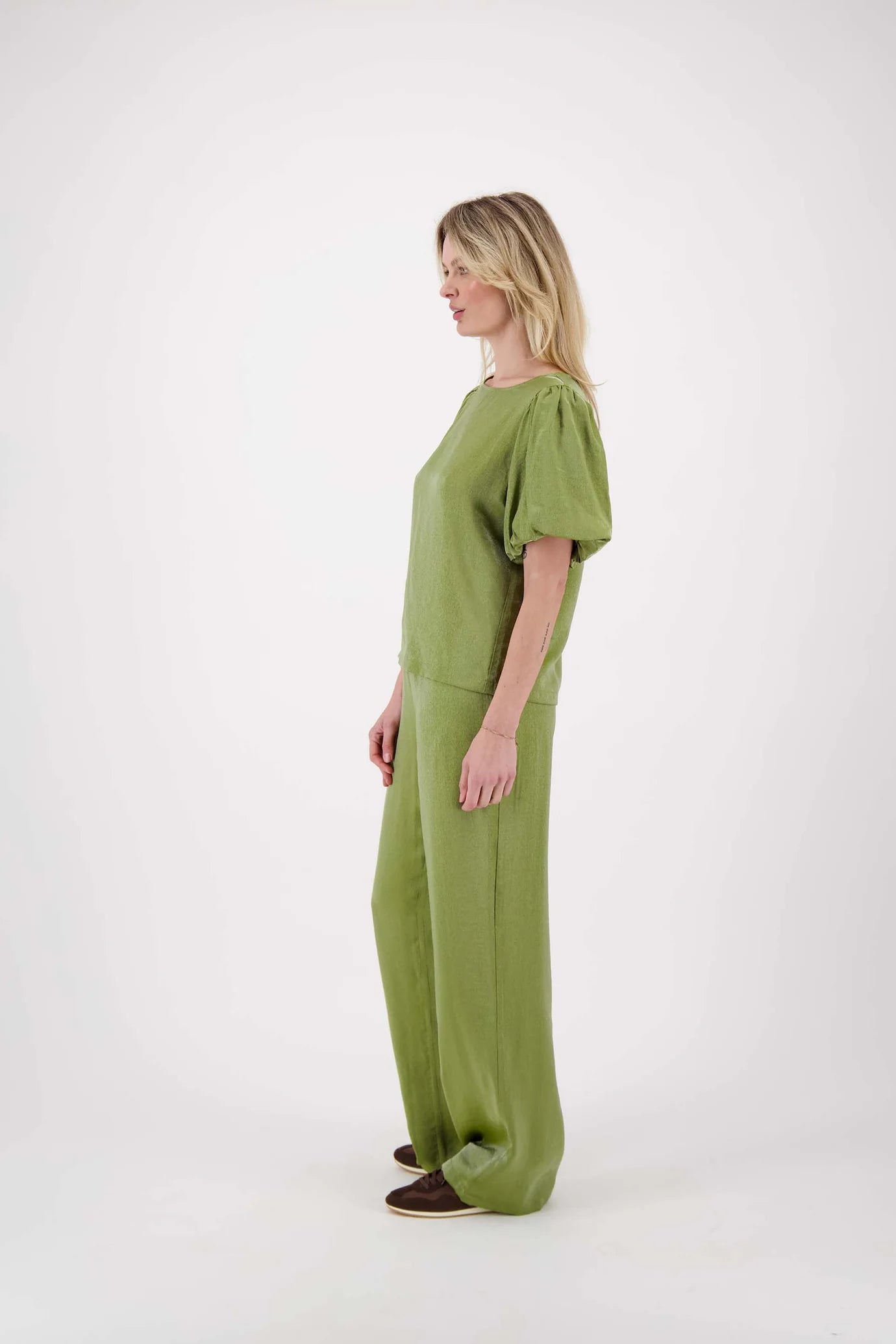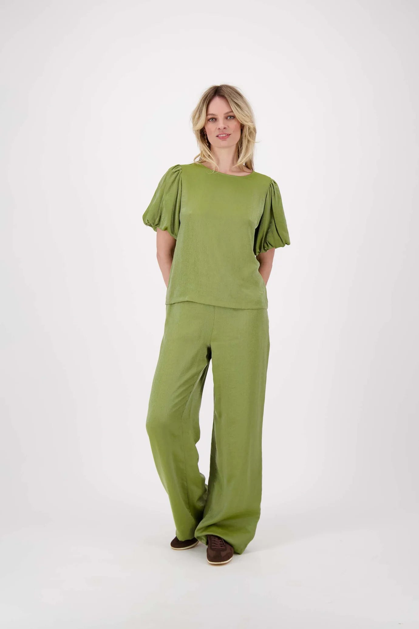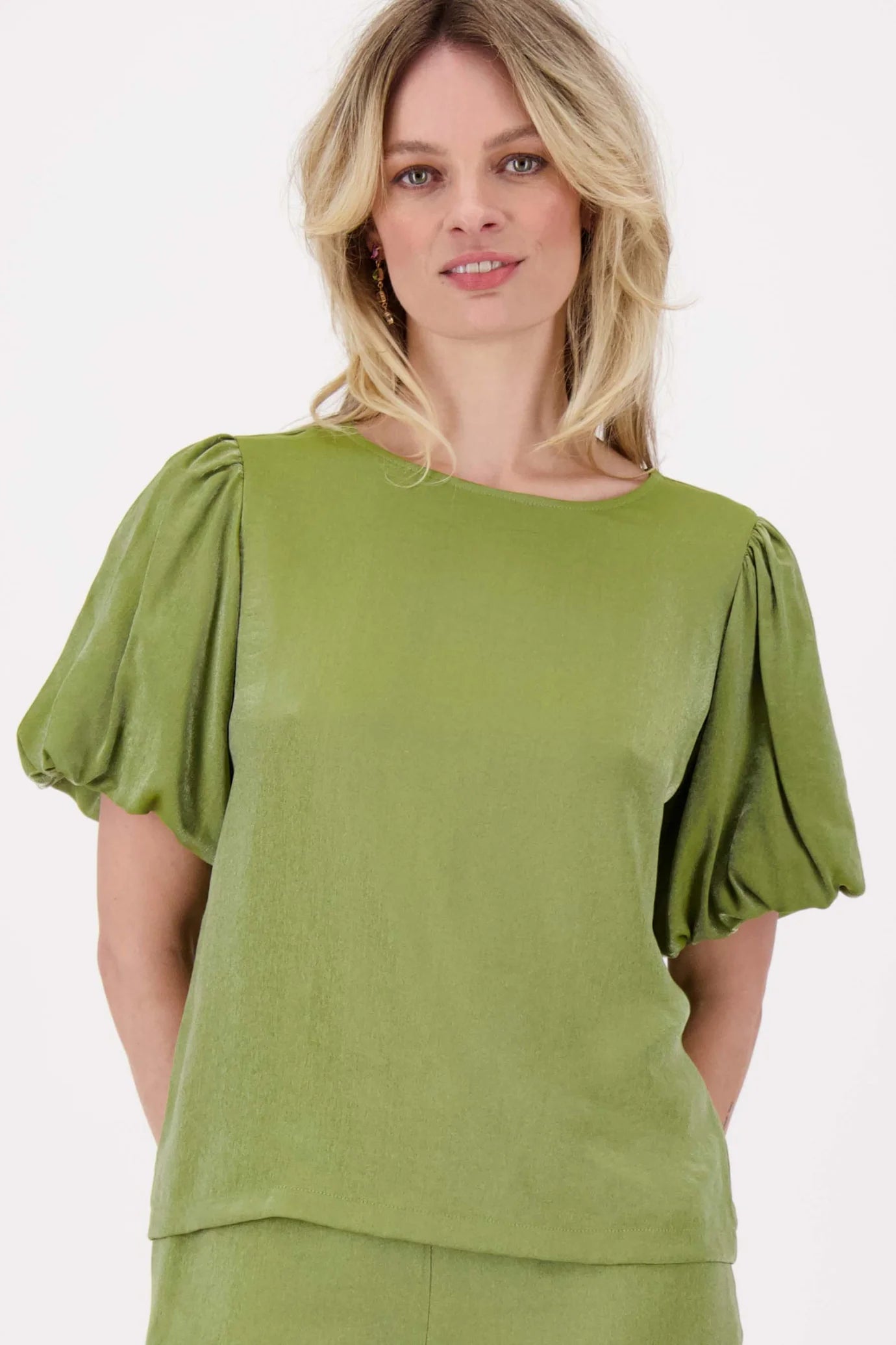 De satijnen top met pofmouw van Zusss is een stijlvolle keuze voor wie graag nét even iets anders draagt. Deze satijnen top valt op door de subtiele glans en de speelse pofmouwen die de look afmaken. De zachte avocado kleur maakt de satijnen top makkelijk te combineren met verschillende outfits. Draag deze satijnen top met je favoriete jeans of rok voor een charmante, verfijnde uitstraling. Met deze satijnen top straal je een natuurlijke elegantie uit, perfect voor diverse gelegenheden.
